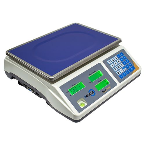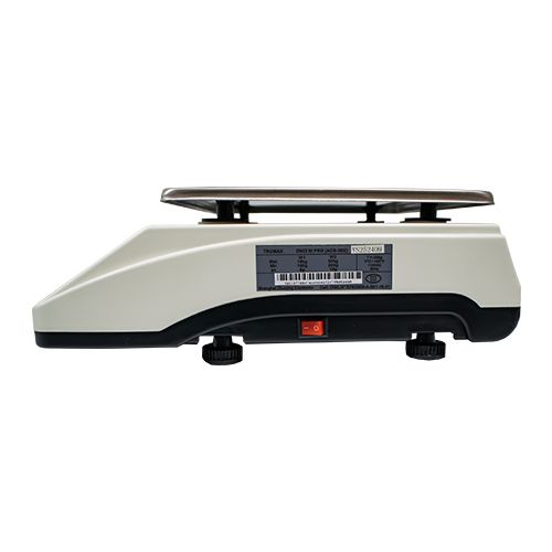Balanza liquidadora marca Trumax, disponible en version plana, con interfase RS232, fabricada en ABS de alta resistencia, plato en acero inoxidable de 22.5×32.5cm, display LCD, bateria recargable, capacidad maxima:15/30kg, division de escala 5/10g, Con certificacion OIML, homologada para metrología Legal en Colombia, cumplen resolución 77506 de la Superintendencia de Industria y Comercio